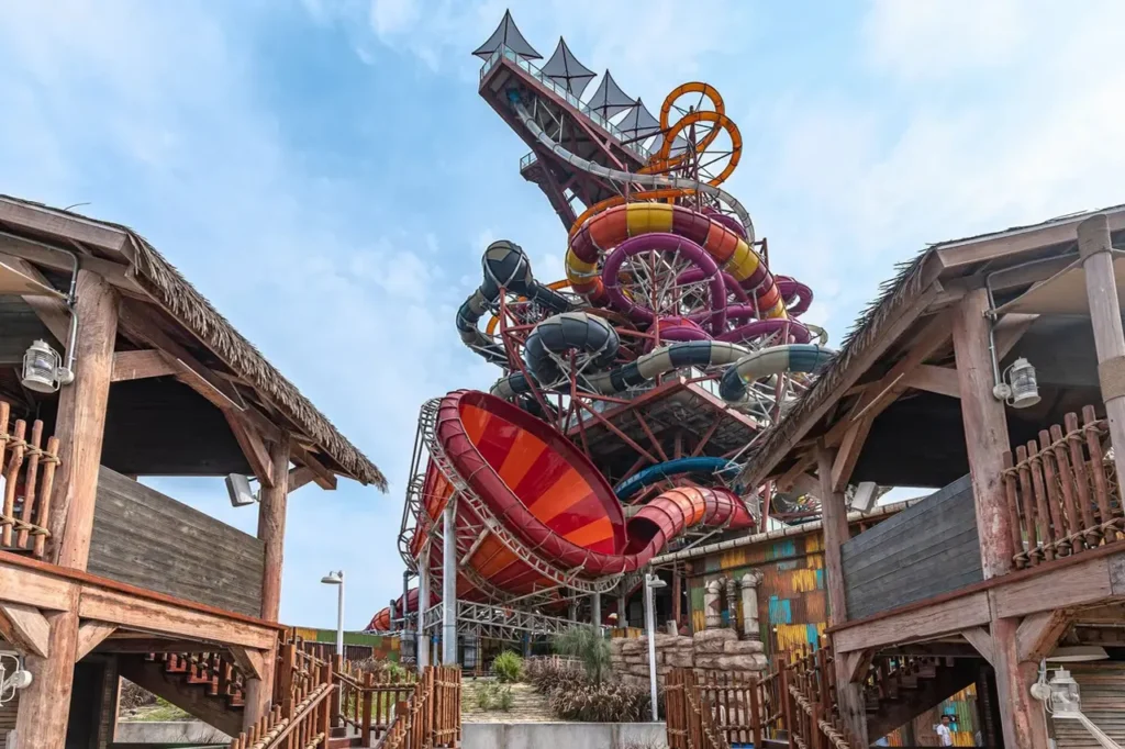 Meryal Waterpark in Doha is the largest waterpark in Qatar, featuring thrilling slides, wave pools, and family-friendly attractions inspired by Qatari culture. Its signature icon, The Rig 1938, is one of the world’s tallest water slides, offering an unforgettable adrenaline rush.